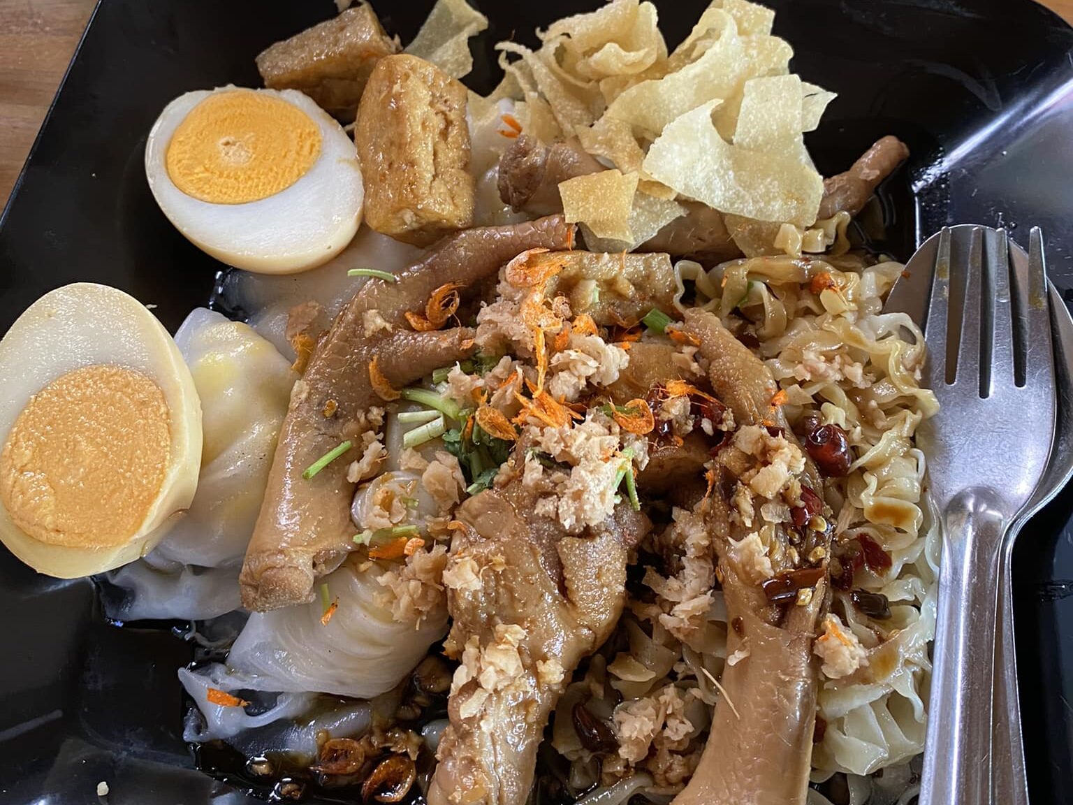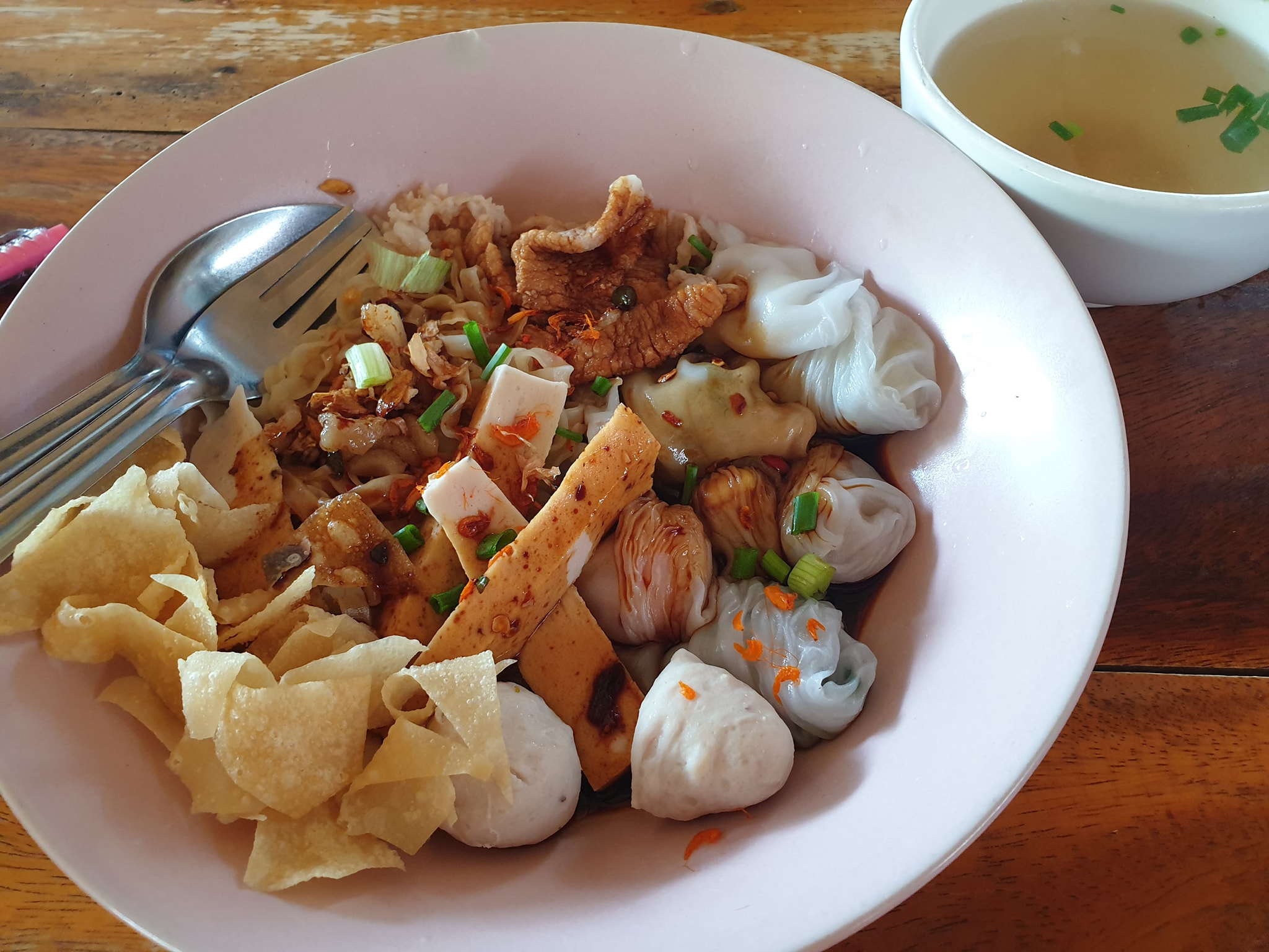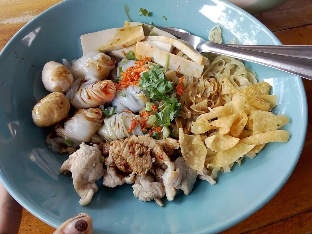 คุณแจงก๋วยเตี๋ยวปากหม้อเข้าวัง หนึ่งเดียวไม่มีสาขา เมืองขอนแก่น ร้านมีโต๊ะนั่งเยอะ ทำปากหม้อสดๆ หน้าร้านเลย เมนูที่สั่ง ก๋วยเตี๋ยวปากหม้อน้ำใส 50 บาท ปากหม้อ 6 ไส้ หมูยอ หมูชิ้น ลูกชิ้น