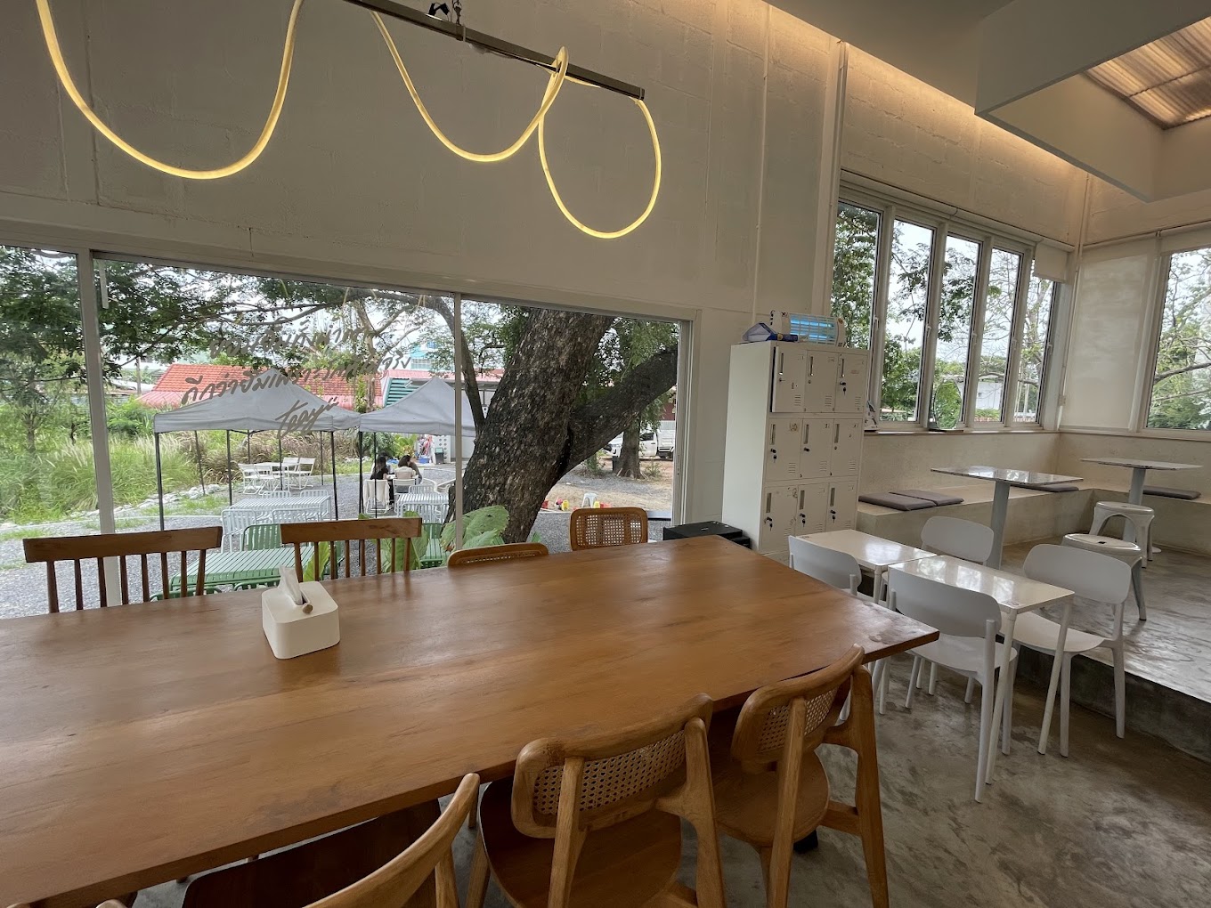 สไตล์มินิมอลคุมโทนสีขาวตกแต่งให้สบายตา มีมุมถ่ายรูปมากมายให้เลือกและที่นั่งมีทั้งด้านนอกและด้านในไม่ต้องแย่งกันเหมาะแก่การมานั่งพักผ่อนคุยงาน บรรยากาศร่มรื่นเย็นสบายเพราะข้างนอกมีต้นไม้ใหญ่ให้ธรรมชาติสุดๆ มีเครื่องดื่มให้เลือกเต็มที่และเค้กต่างๆที่ทุกคนมาแล้วต้องมาซ้ำอีกแน่นอน เราคอนเฟิร์ม