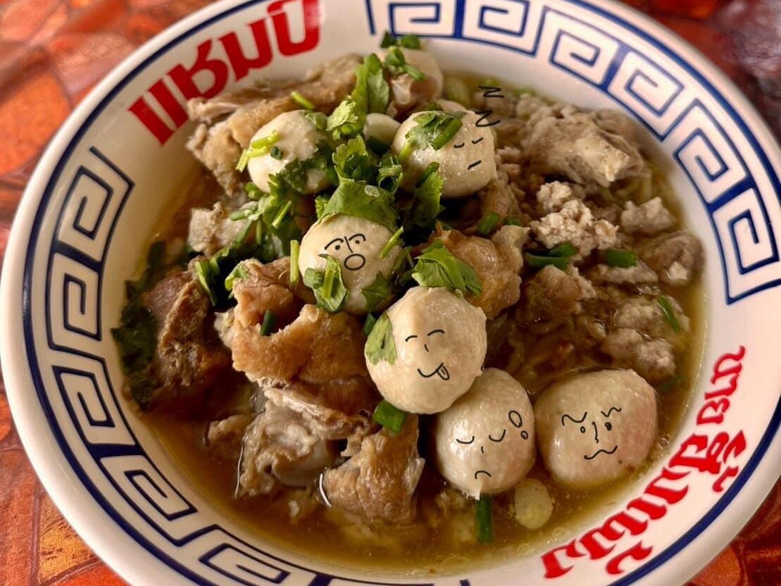 รสชาติพอดีมาก ไม่ต้องปรุงก็ได้ ในชามมีทั้งหมูชิ้น หมูบะช่อเป็น ก้อนตับหมู ลูกชิ้นหมู
