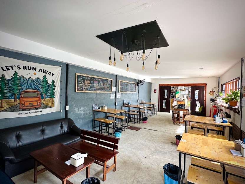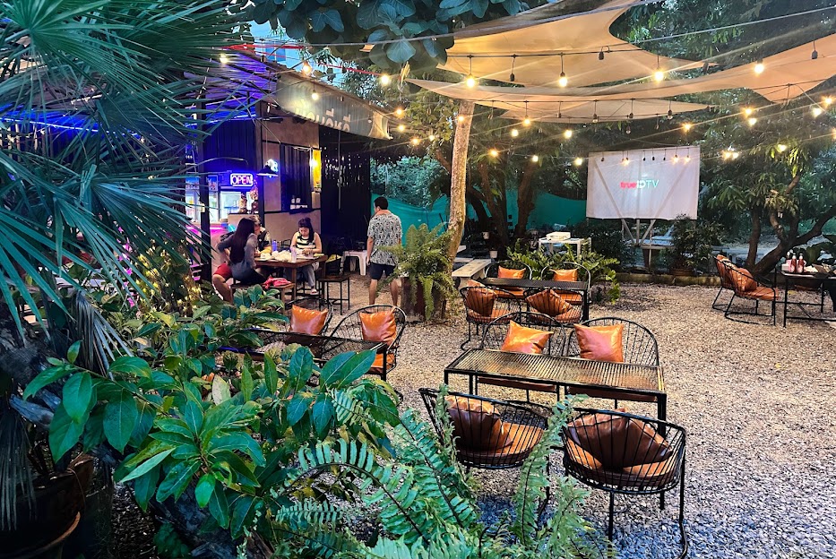 ✨ พื้นที่ร้านค่อนข้างเปิดกว้าง บรรยากาศOurdoor โปร่งโล่งไม่อึดอัดเลยทางร้านมีโซนหลักๆ คือ โซนนั่งชิลล์ ที่มีให้เลือกหลากหลายมุม และหน้าบาร์ หรือโซนร้านกะเพราและห้องแอร์ (โซนกะเพราจะปิด 21:00)