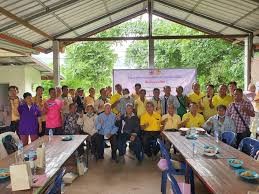 ลงพื้นที่จัดการประชุมวิเคราะห์ชุมชนแบบมีส่วนร่วม ผู้นำชุมชน กำนัน ผู้ใหญ่บ้าน หมอดินอาสา และเกษตรกรทั่วไปในพื้นที่ร่วมวางแผนเกี่ยวกับสภาพการใช้ที่ดิน