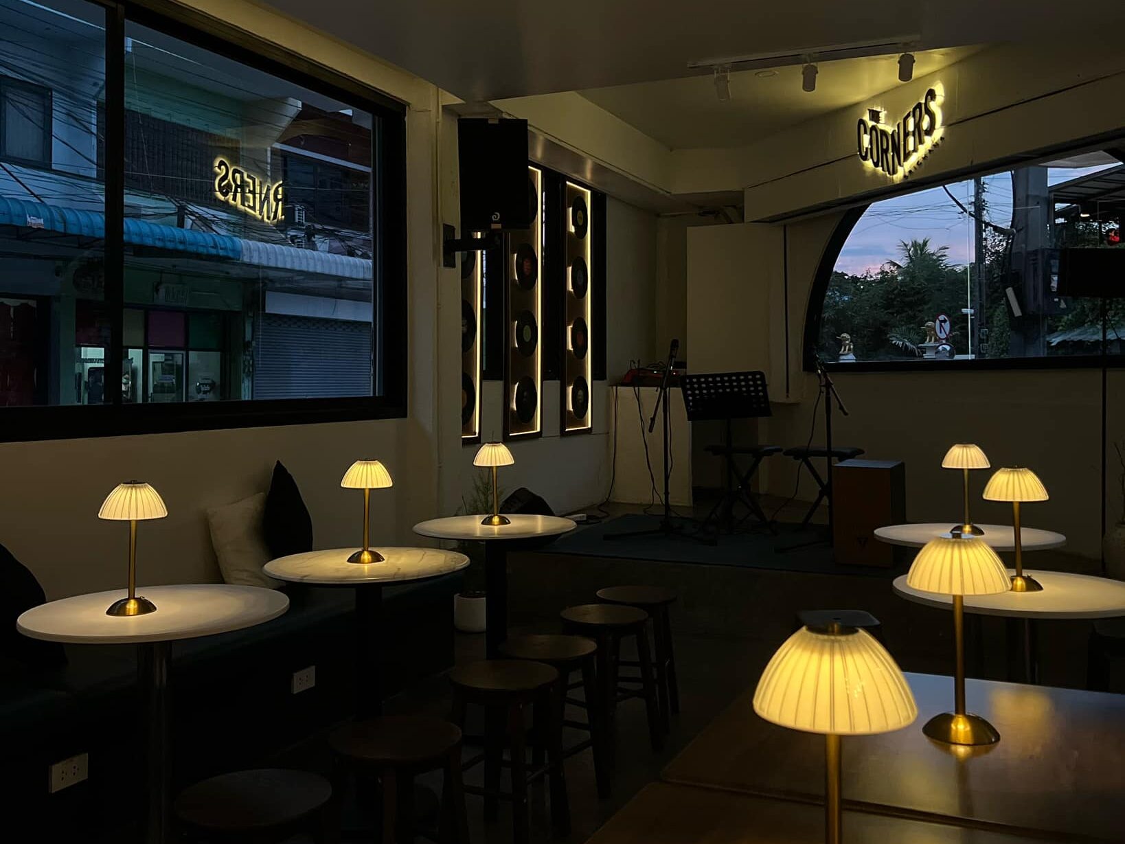 The corners ป็นสถานที่พบปะพูดคุยสังสรรค์กับเพื่อน หรือปาร์ตี้ พบช่วงเวลาดีๆบรรยากาศอบอุ่น เป็นอาหารจานเดียว และมีดนตรีสดให้ฟังทุกวัน
